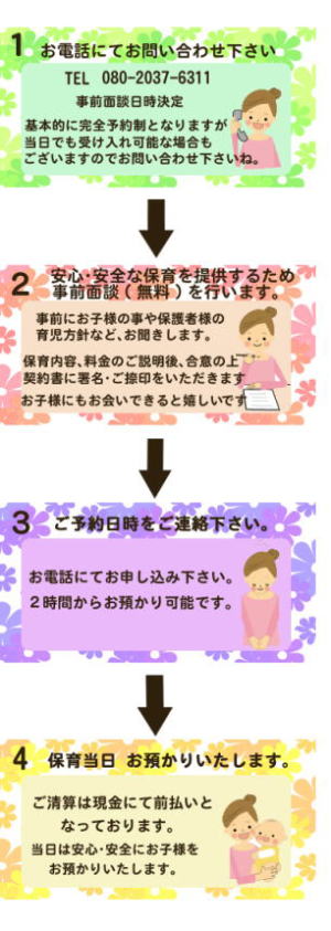 ※病児のお預かり・投薬は出来ませんのでご了承下さい。(訪問でのお預かりは応相談でお受けできる場合がございます)